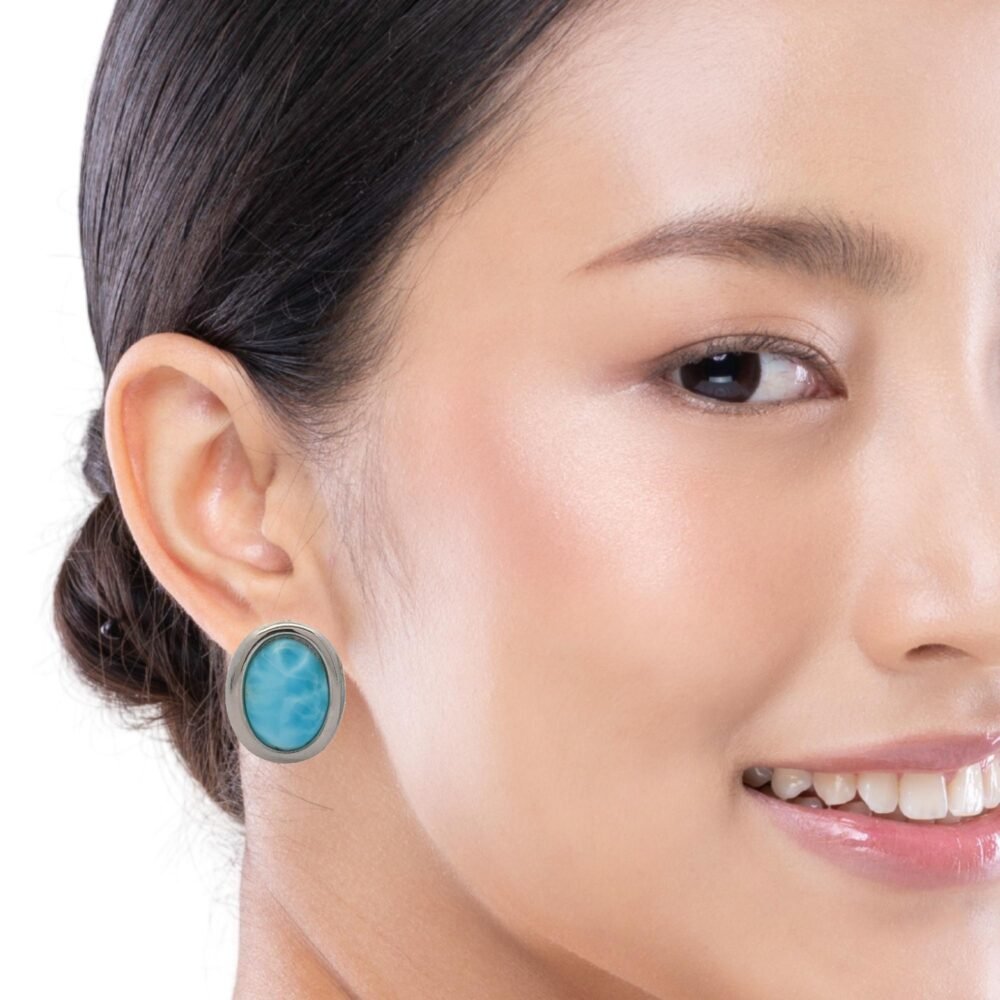 Larimar 10X14mm Oval Stud Vermeil Earrings