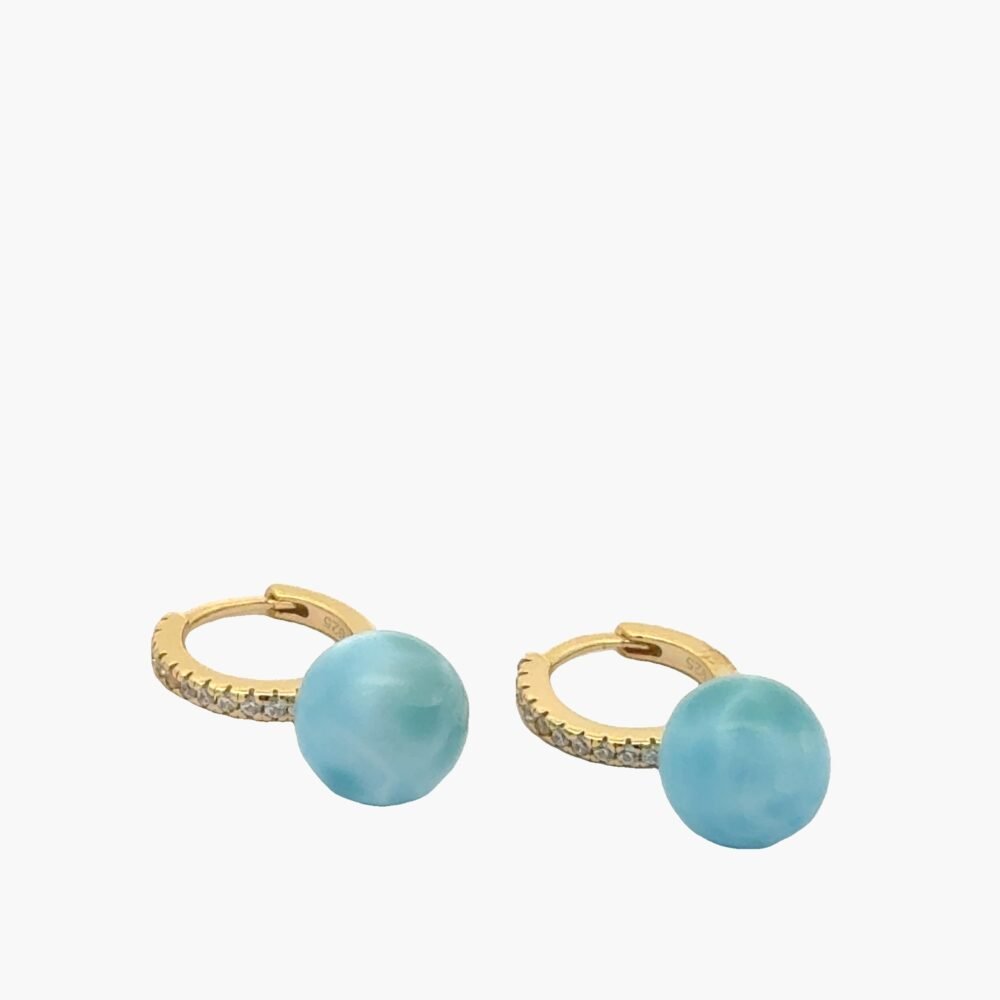 Larimar 8-10mm Spheres Huggies Earrings