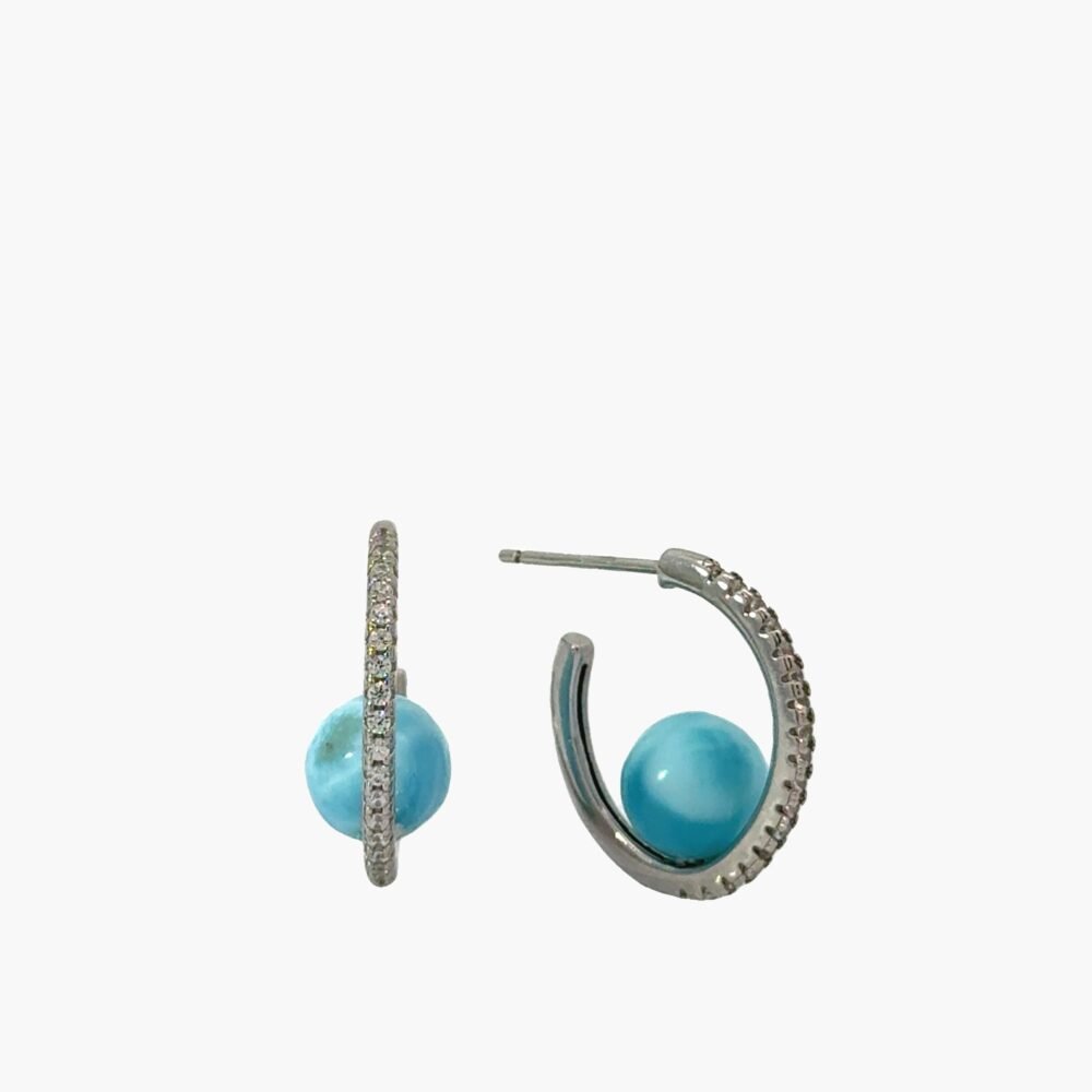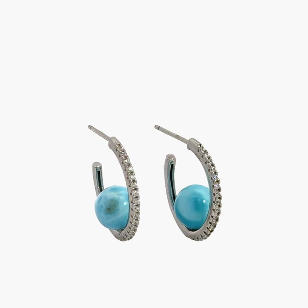 7mm Larimar Spheres Sterling Silver Hoops Earrings