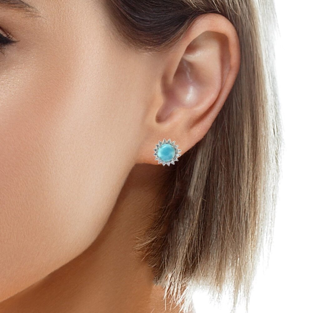 7mm Larimar Star With White Sapphire Accents Stud Earrings