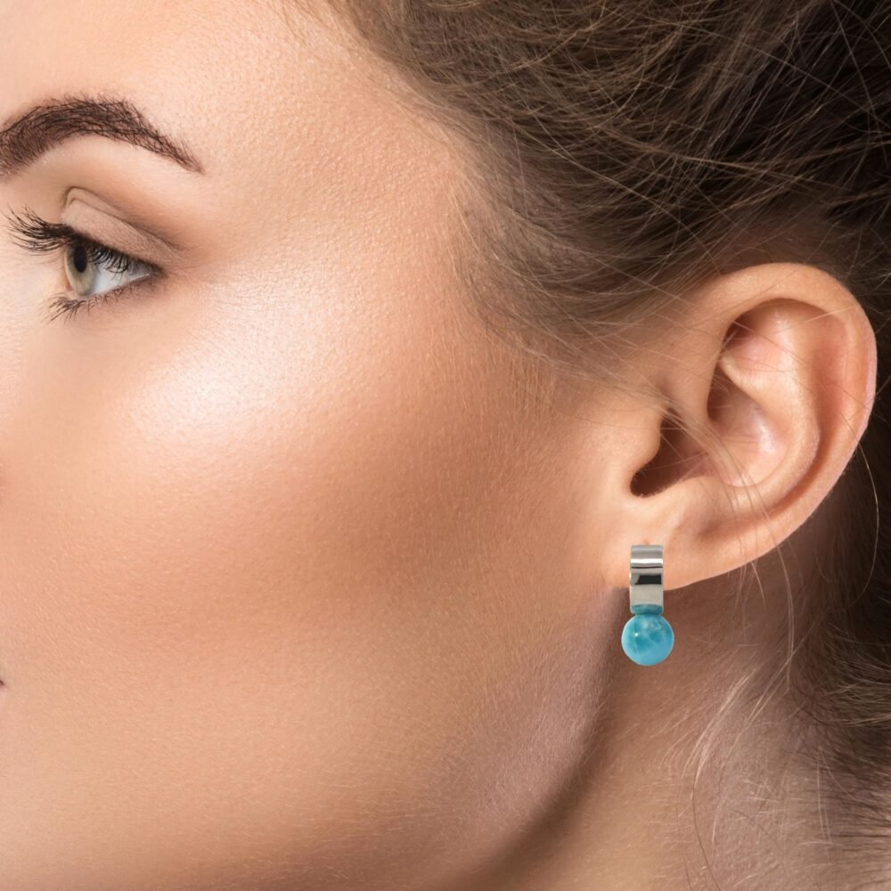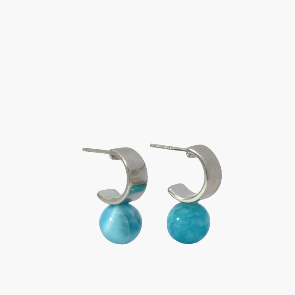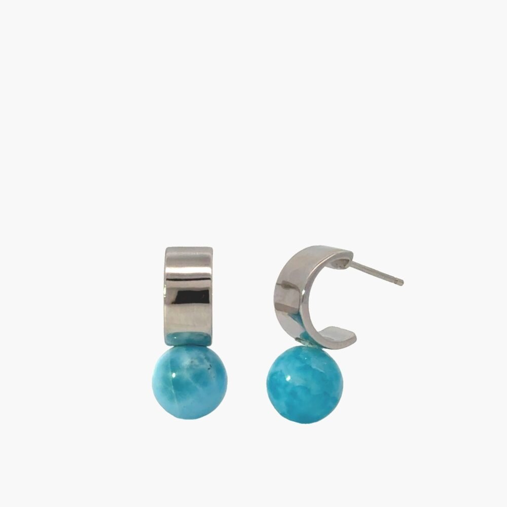 Larimar 8-9mm Spheres, Bold Hoops Earring