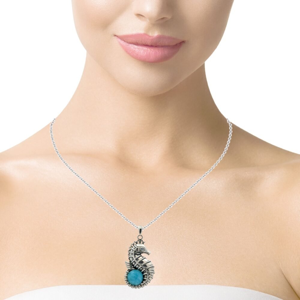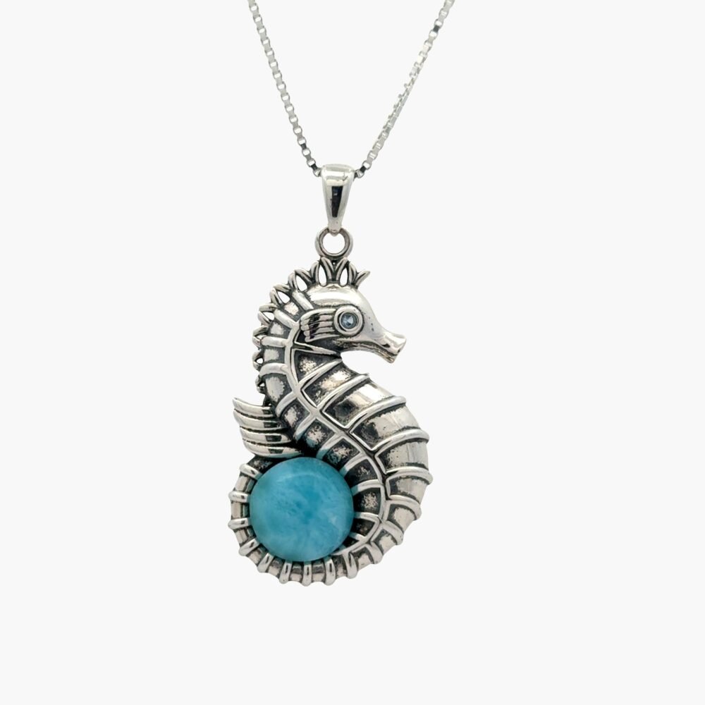 Larimar 10mm Seahorse Oxidized