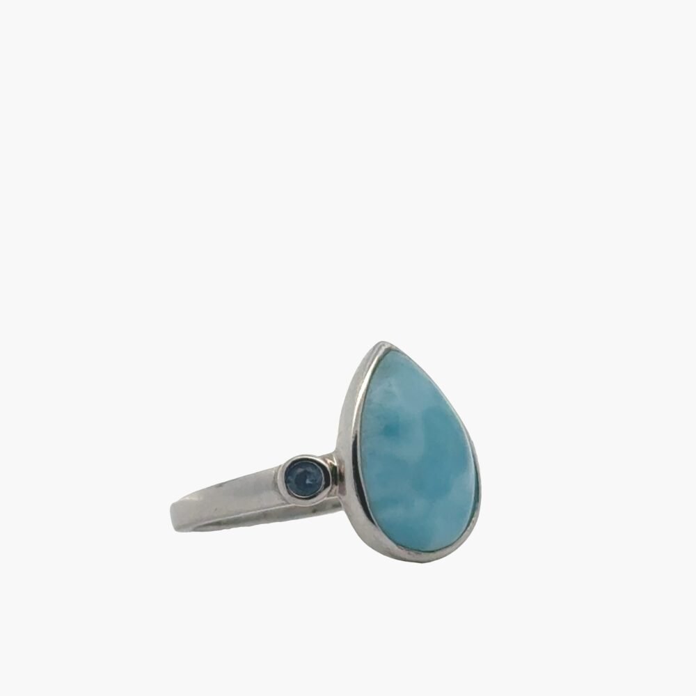 Larimar 10X14 Pear Shaped Ring With Two Aqua Accents