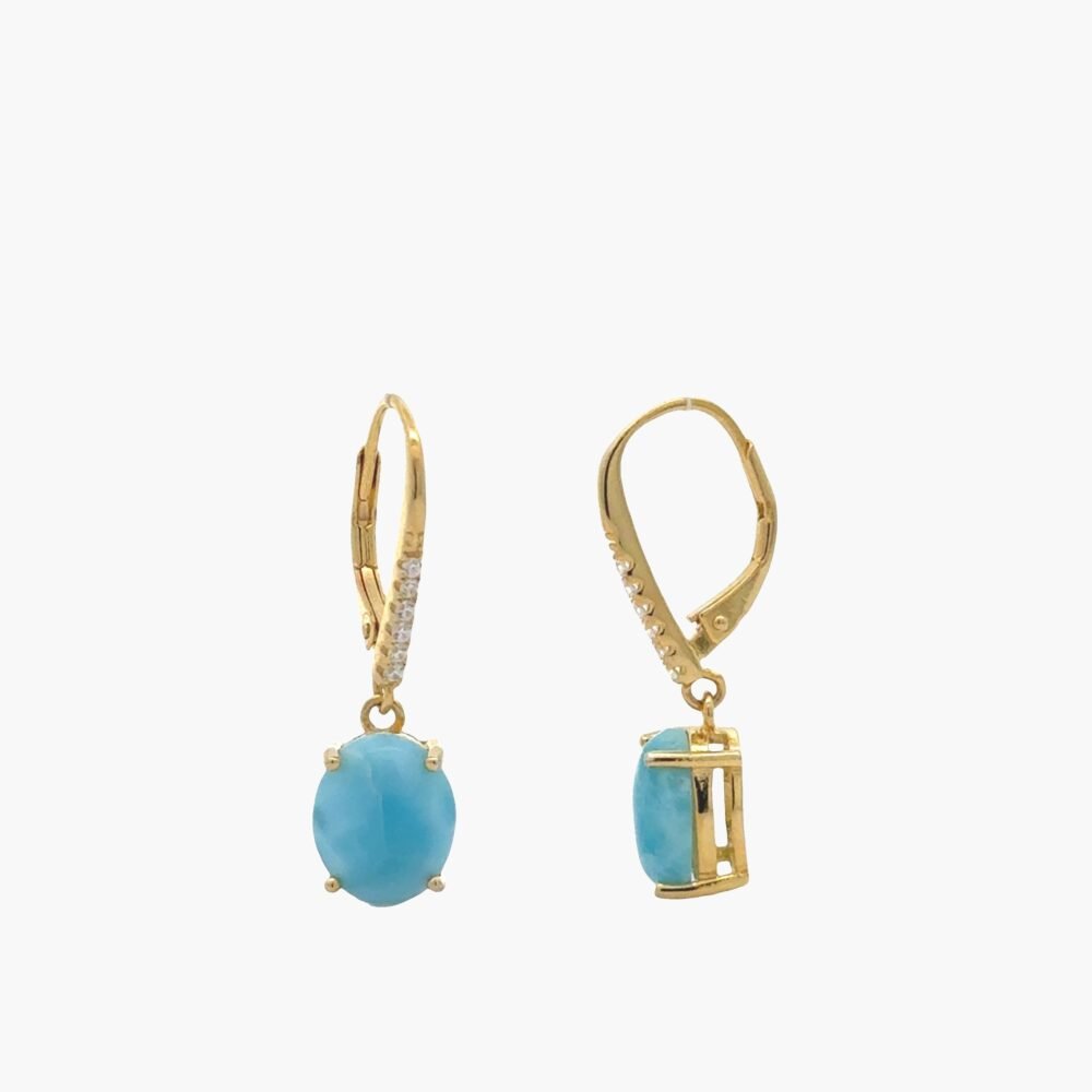 Larimar 10X8mm Lever-back Dangle Earrings (Vermeil )