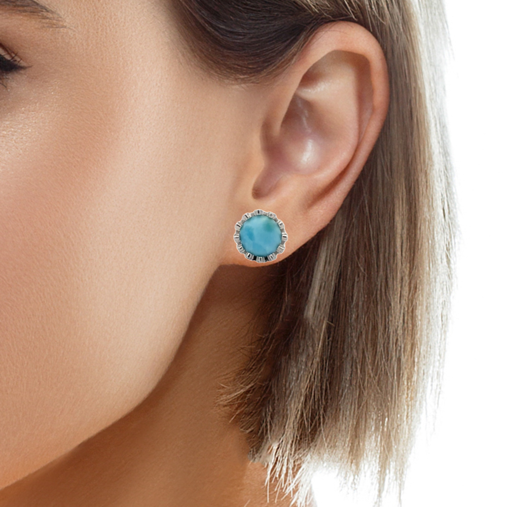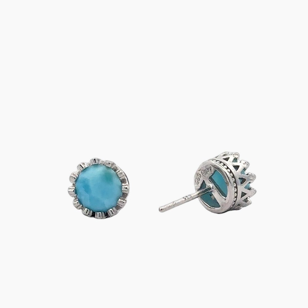 Larimar 7mm Stud Crown Earrings