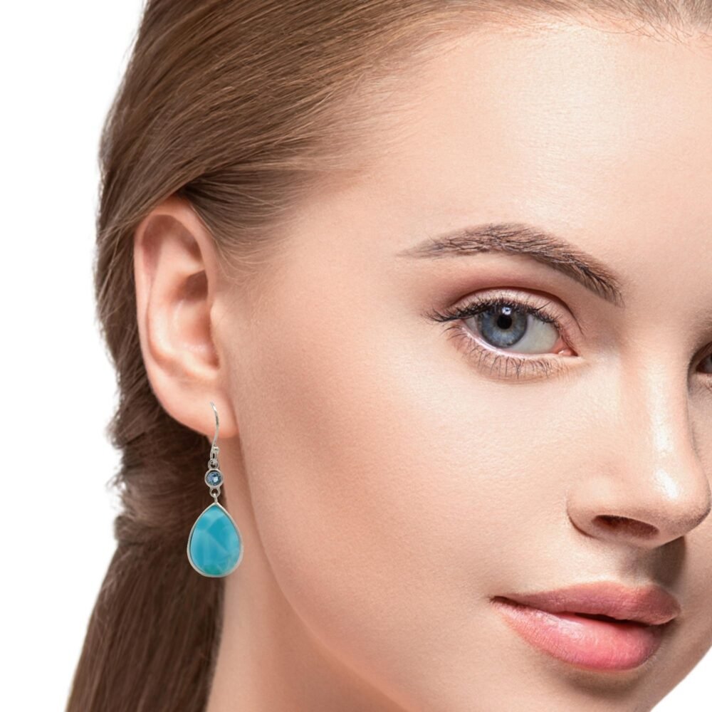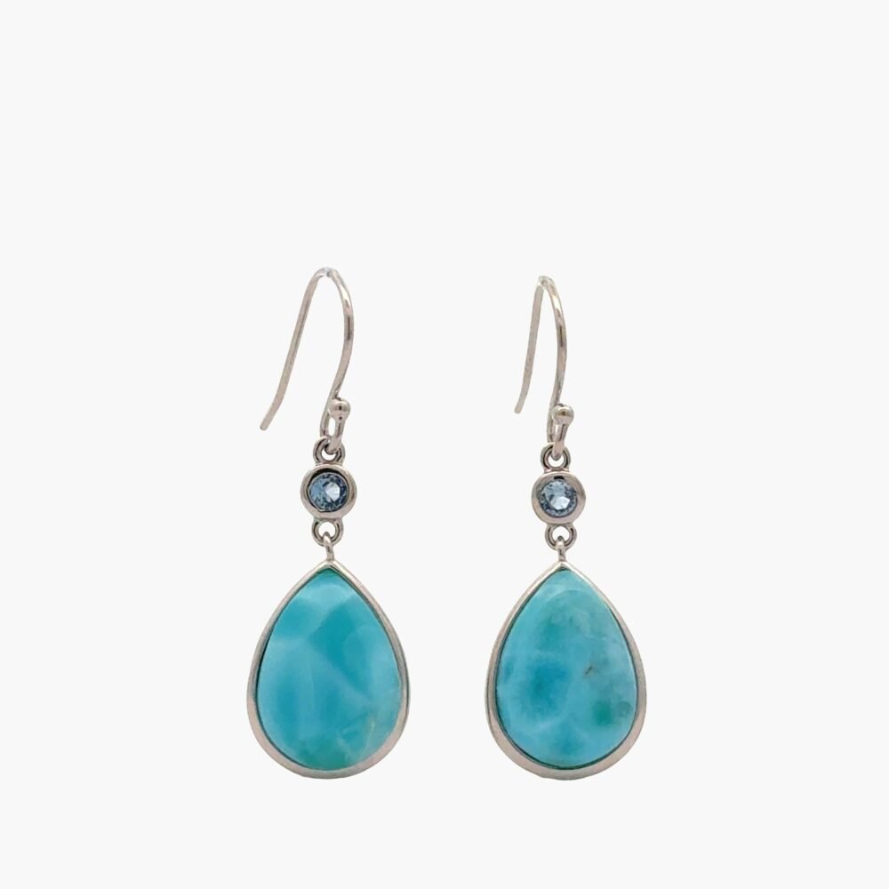 Larimar 14X10mm Pear Shaped Dangle Hook Earrings