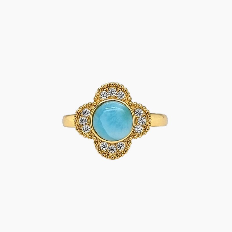 Larimar Clover Leaf Ring With White Sapphire Accents