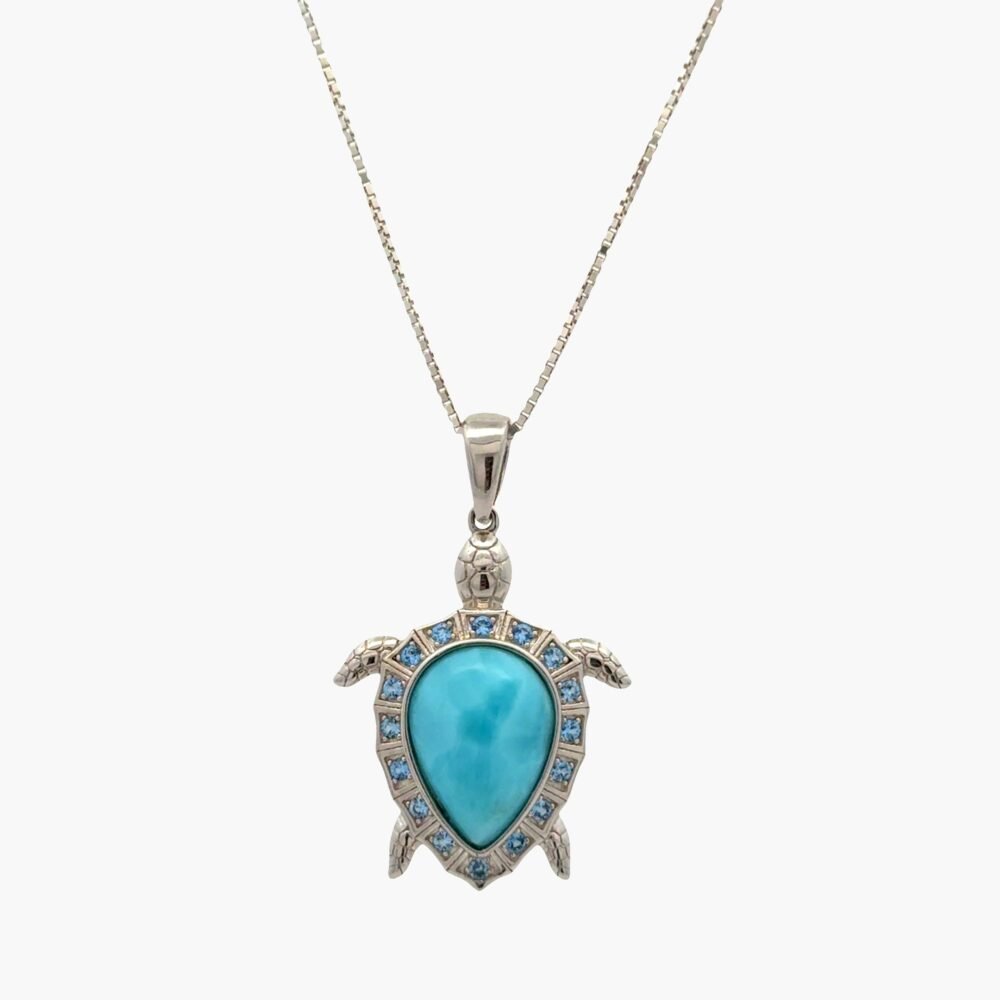 Larimar 10x14mm Sea Turtle Pendant Aquamarine Accents