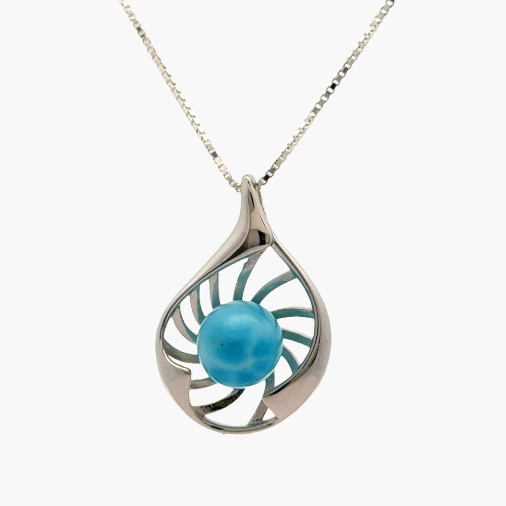 Blue 9mm Larimar Sphere Seashell Pendant