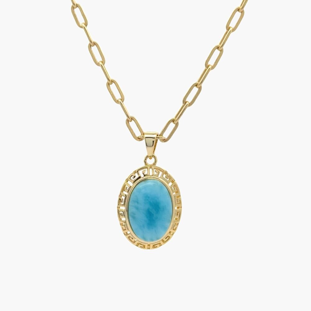 Stunning Larimar Greek Key Necklace 14KT Gold Over .925 Sterling Silver