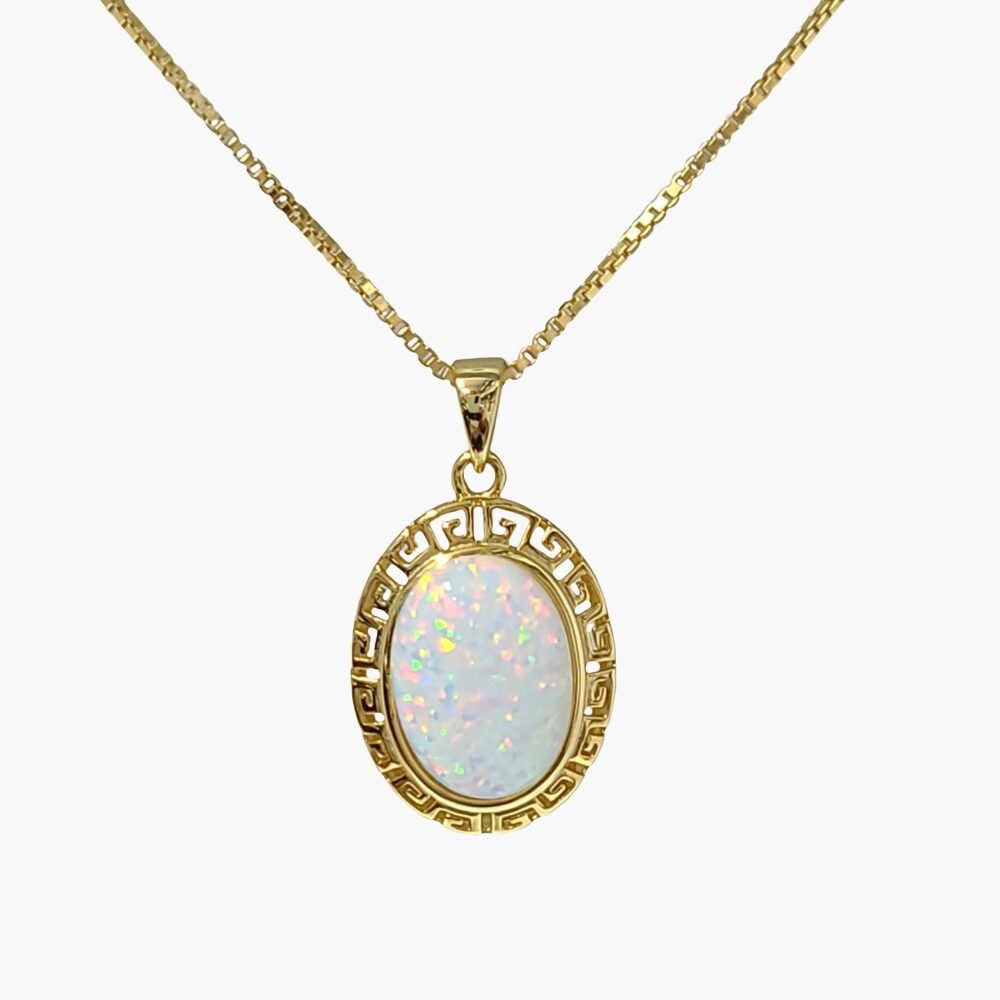 Stunning White Opal Greek Key Necklace