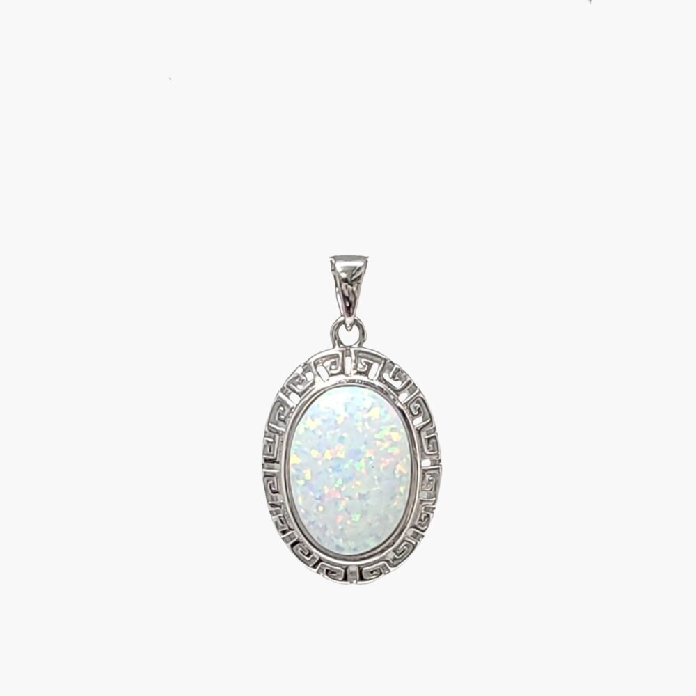 Stunning White Opal 10X14mm Greek Key Necklace