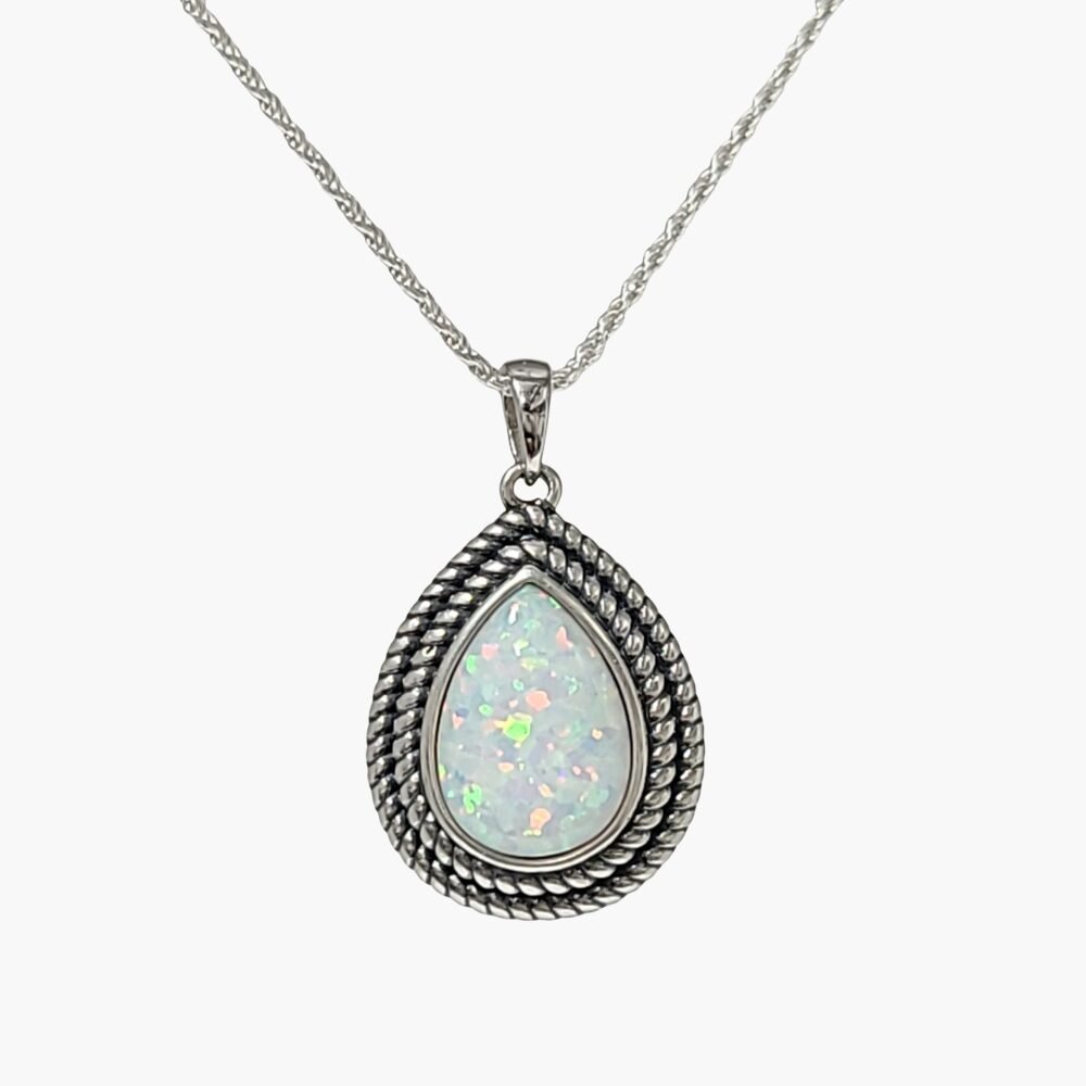 White Opal 10x14mm Pear Shaped Pendant