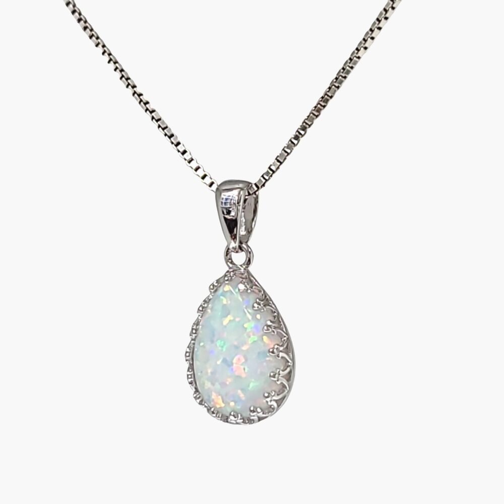 White Opal 10x14mm Pear Shaped Crown Pendant