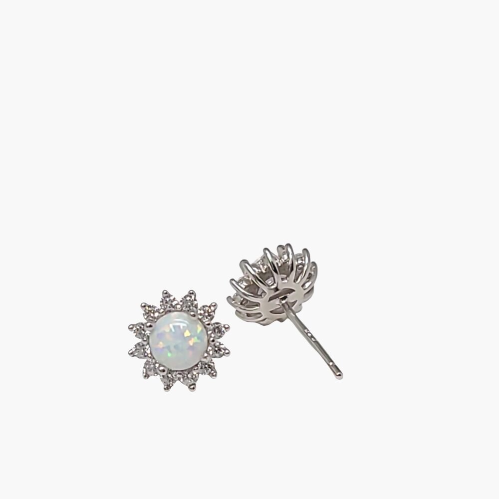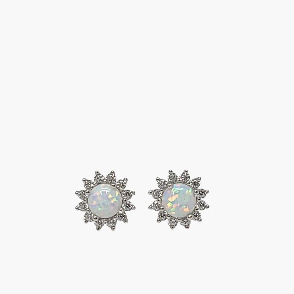 White Opal 5mm Halo Stud Earrings