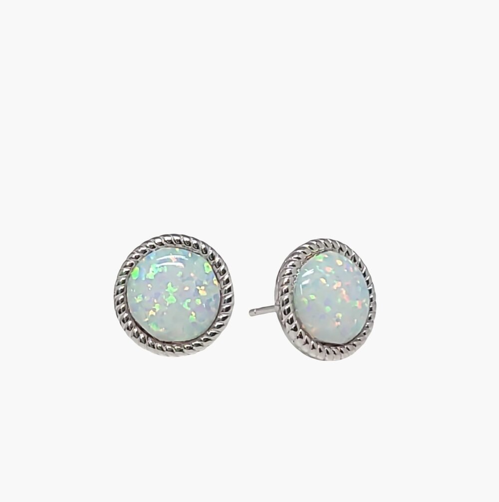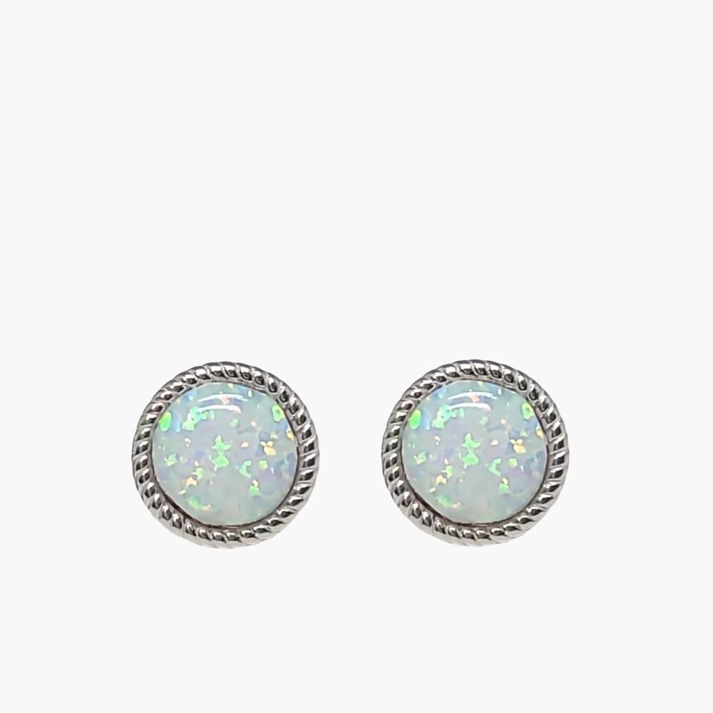8mm White Opal Stud Earrings