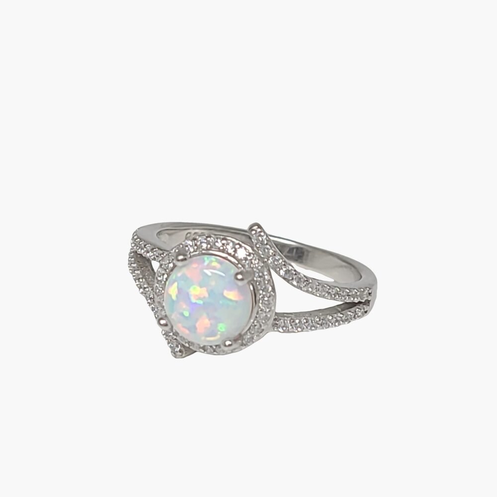 White Opal Sterling Silver Halo Ring.